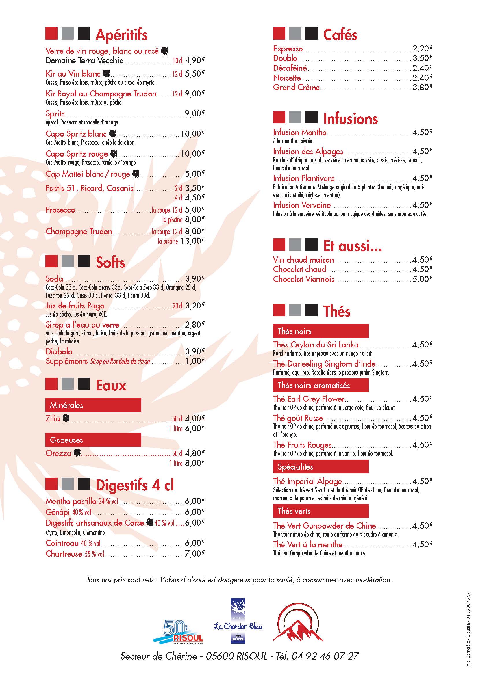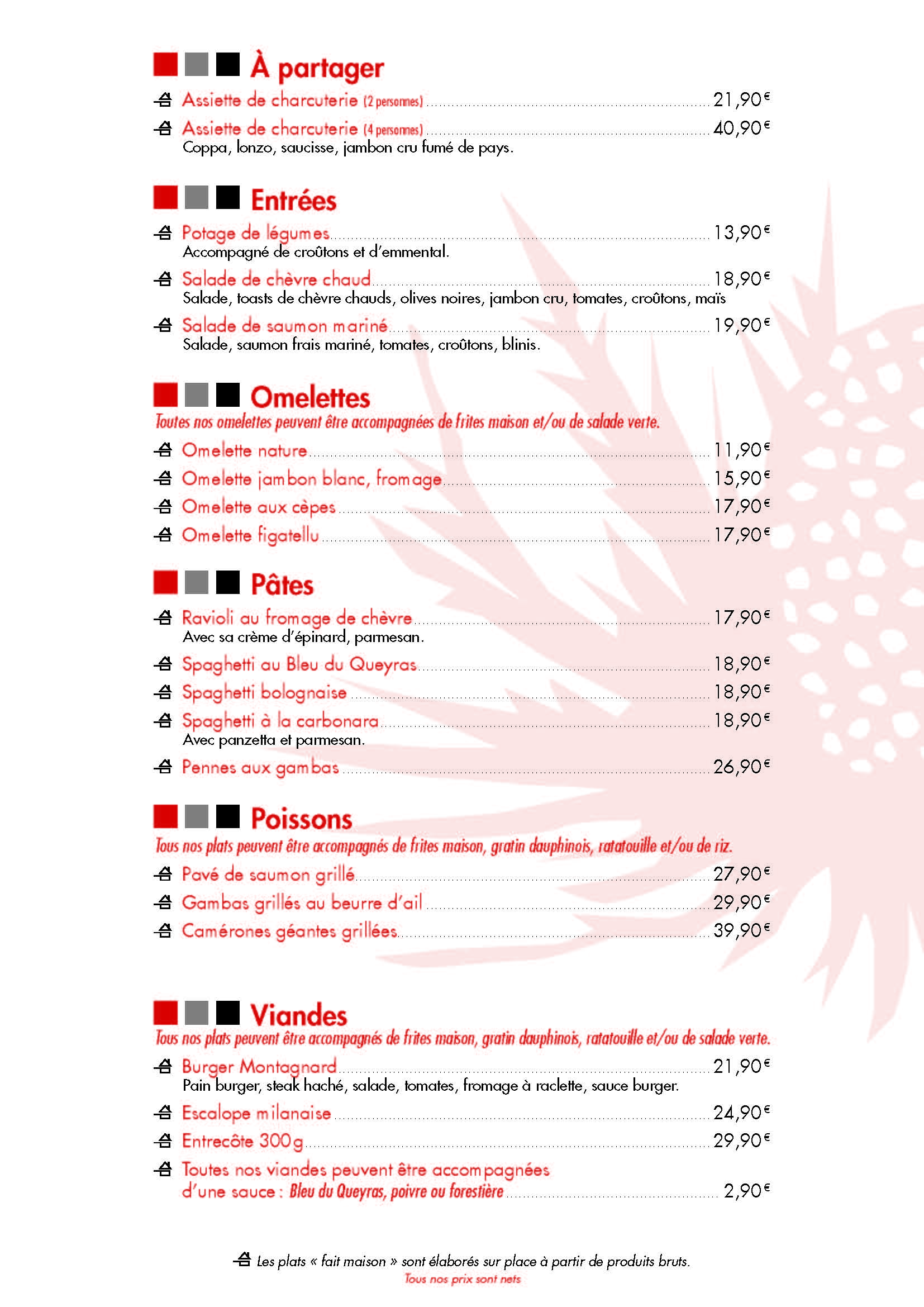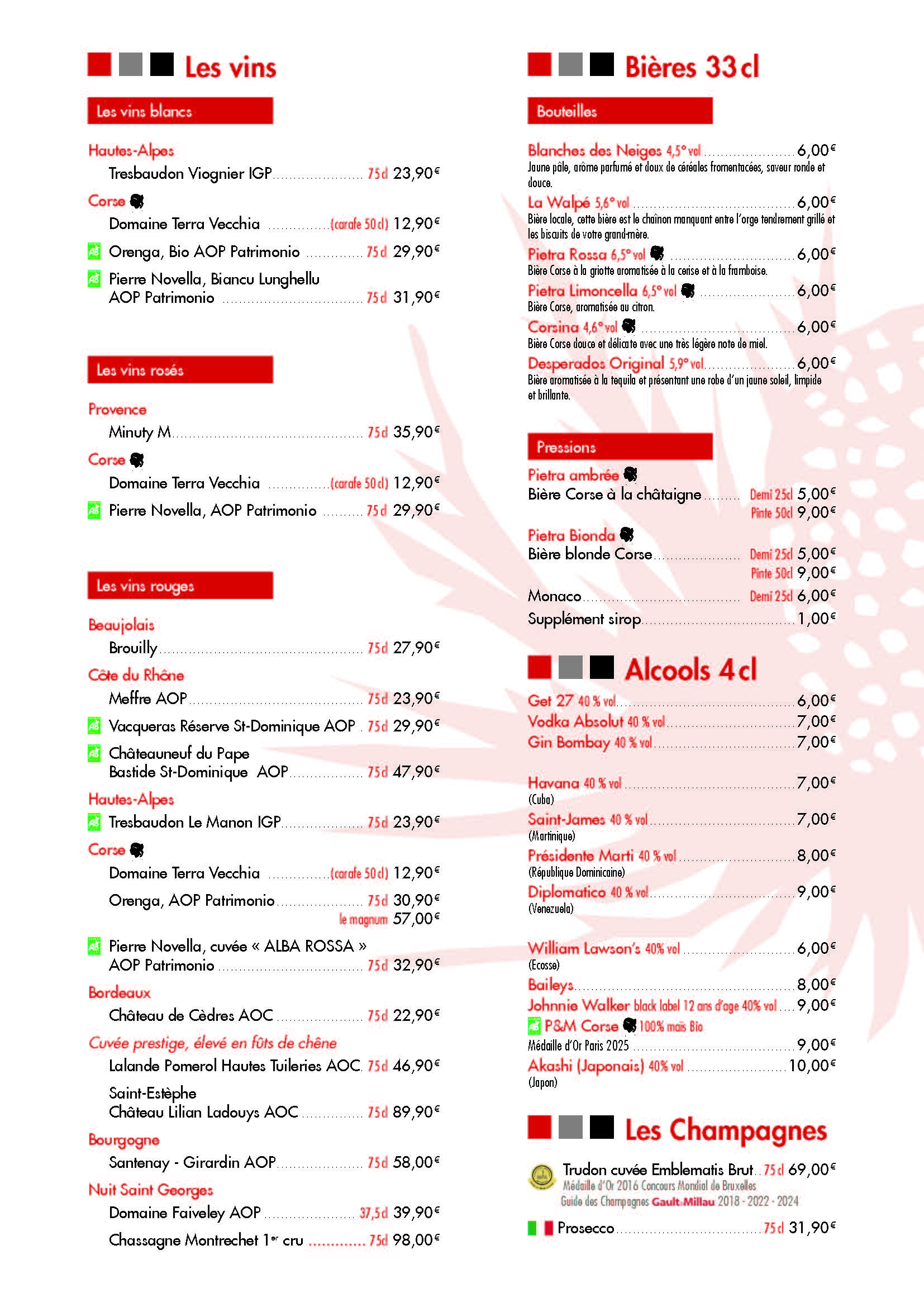 Restaurant ouvert tous les jours, midi et soir, en saison hiver et été.